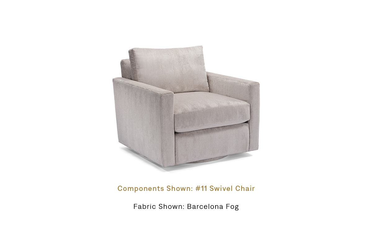 The Alternatives program offers the ultimate flexibility to fully customize any chair. With a diverse selection of arm styles, base and leg options, and cushion preferences for both back and seat, it provides unparalleled customization potential to create the perfect piece for any space. Swivel base option available.