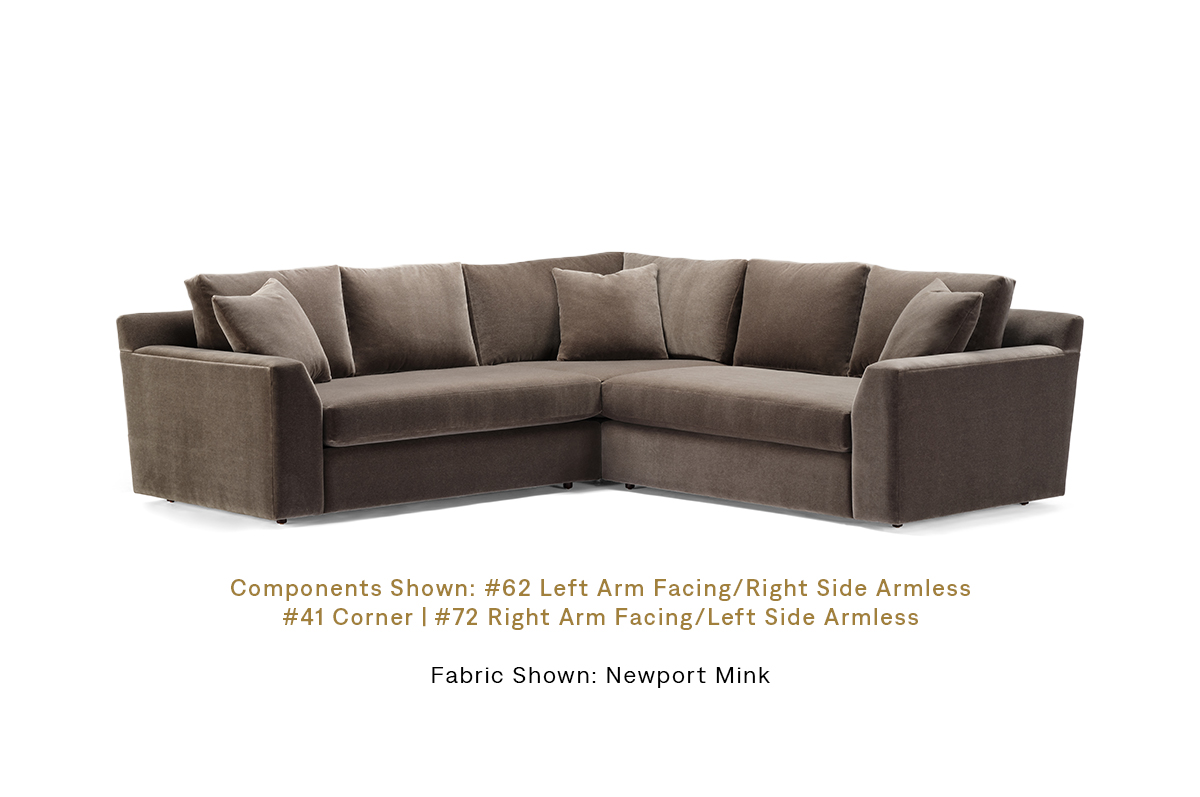The Elliot modern deep sectional series features clipped track arms, with bench seats, and multiple boxed back cushions for a stylish and comfortable seating arrangement.