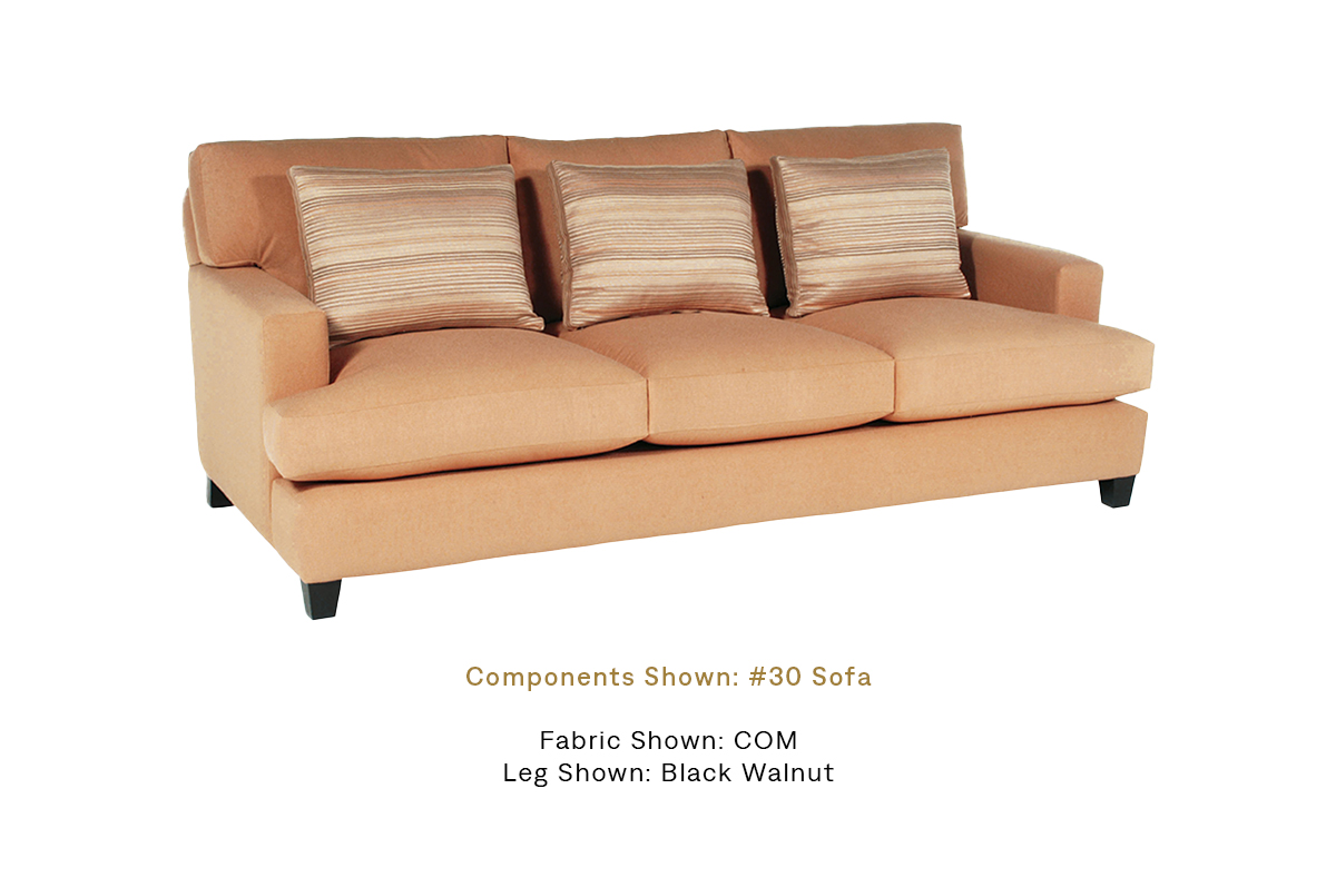 The Mia sofa is a classic track-arm design that features “T” seat and back cushions for a comfortable seating experience. An extra layer of lumbar pillows adds a sophisticated touch, while tapered wood legs complete the elegant look.
