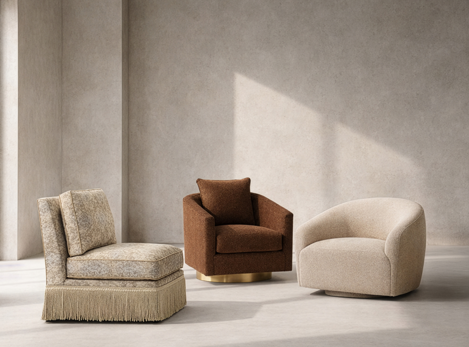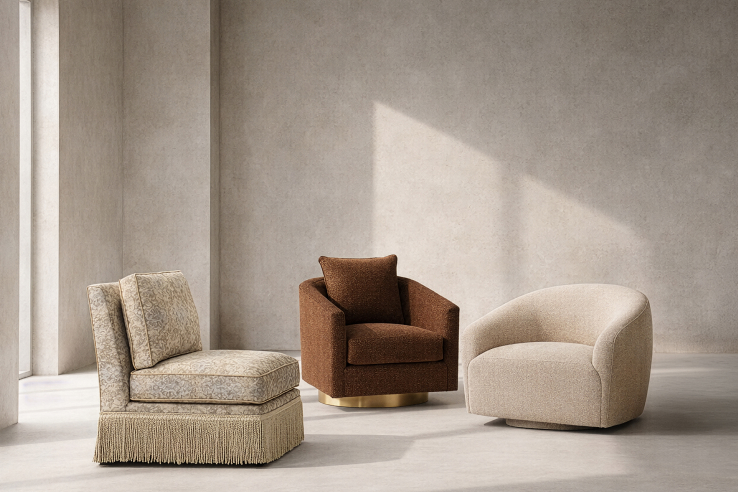 Meet Andrea: a modern twist on the classic slipper chair. Shown in Taos Sand, this armless beauty is customizable in wood finish, base style, cushion fills, contrast welting, and dimensions, making it the perfect fit for any curated space. Whether you choose skirted elegance or tapered legs, comfort and style are always front and center 💫 #burtonjames