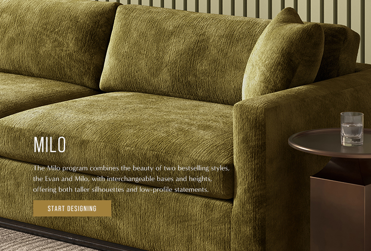 The Evan / Milo program lets you bring the perfect sectional to life with interchangeable bases and heights. Create your ideal balance of softness and structure with four thoughtfully selected back fills, from our ultra-plush Down Supreme to the firmer Regalaire.
