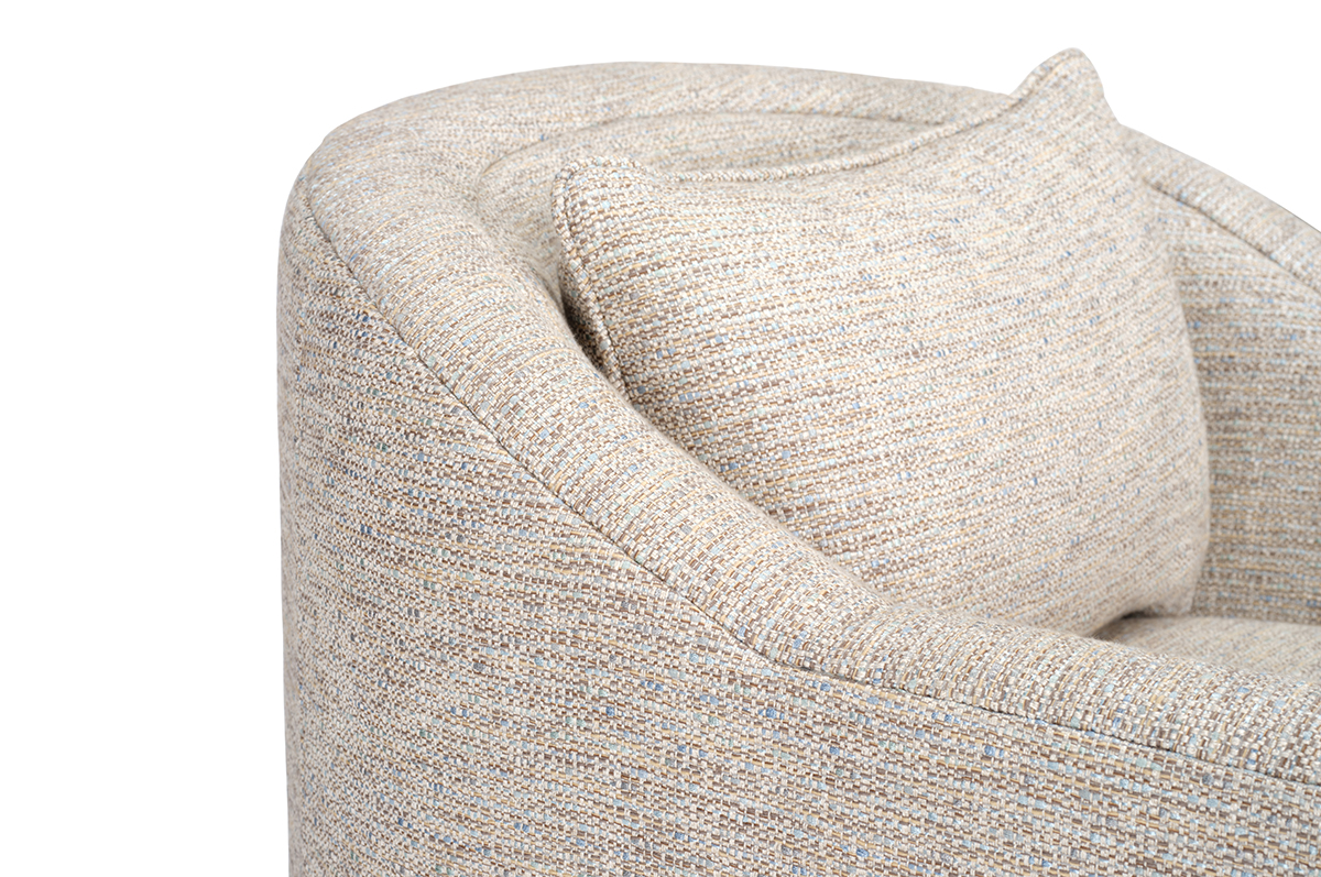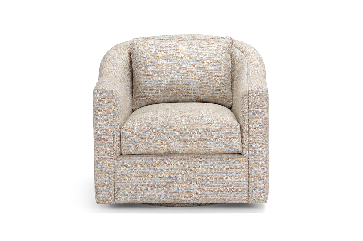 The Hale low-profile swivel chair features a sleek design and includes a lumbar back pillow for added comfort and support.