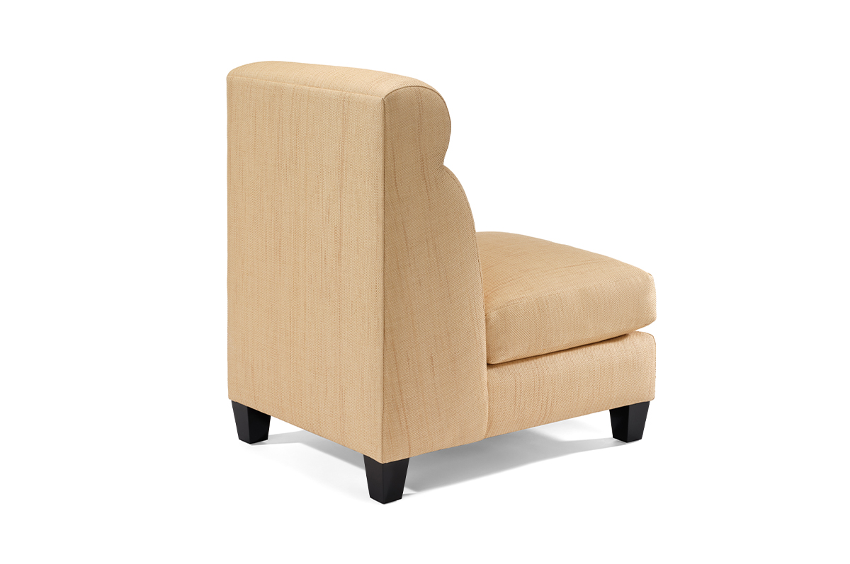 The Finch is a vintage-inspired piece reimagined with a high back, armless profile, and roll top back details. It’s also available with an upholstered plinth base or tapered wood legs, making it the perfect choice for any timeless design.