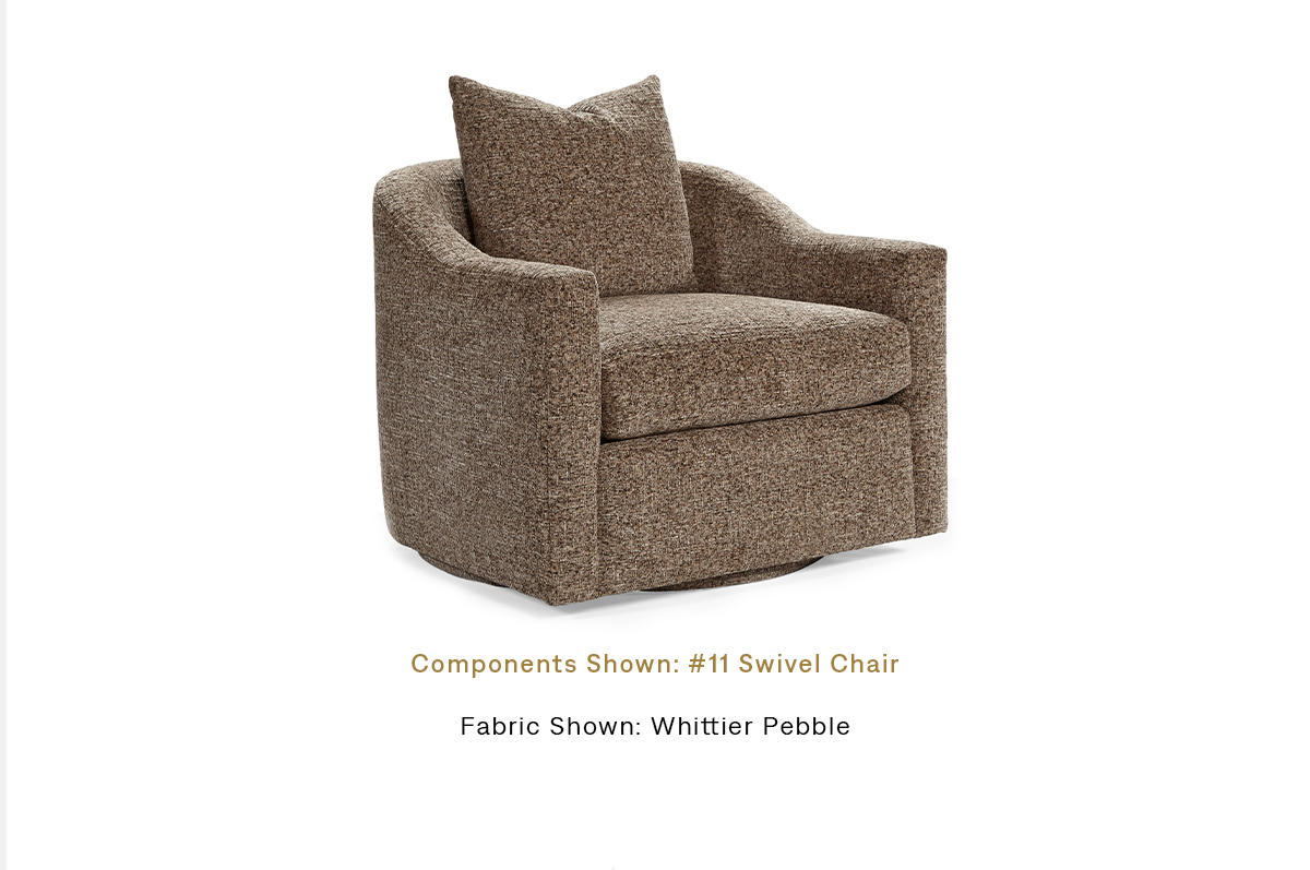 The Shea swivel chair offers a modern, large-scale design with loose seat and back cushions for exceptional comfort and flexibility.