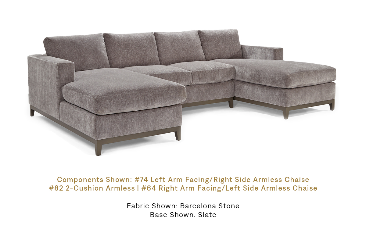 Elevated sectionals with a touch of simplicity await customization. Customize from a selection of base options and arm widths for the ideal contemporary piece.