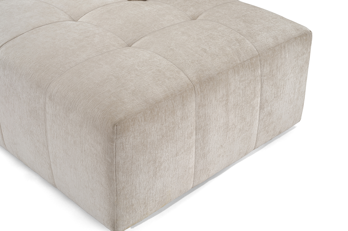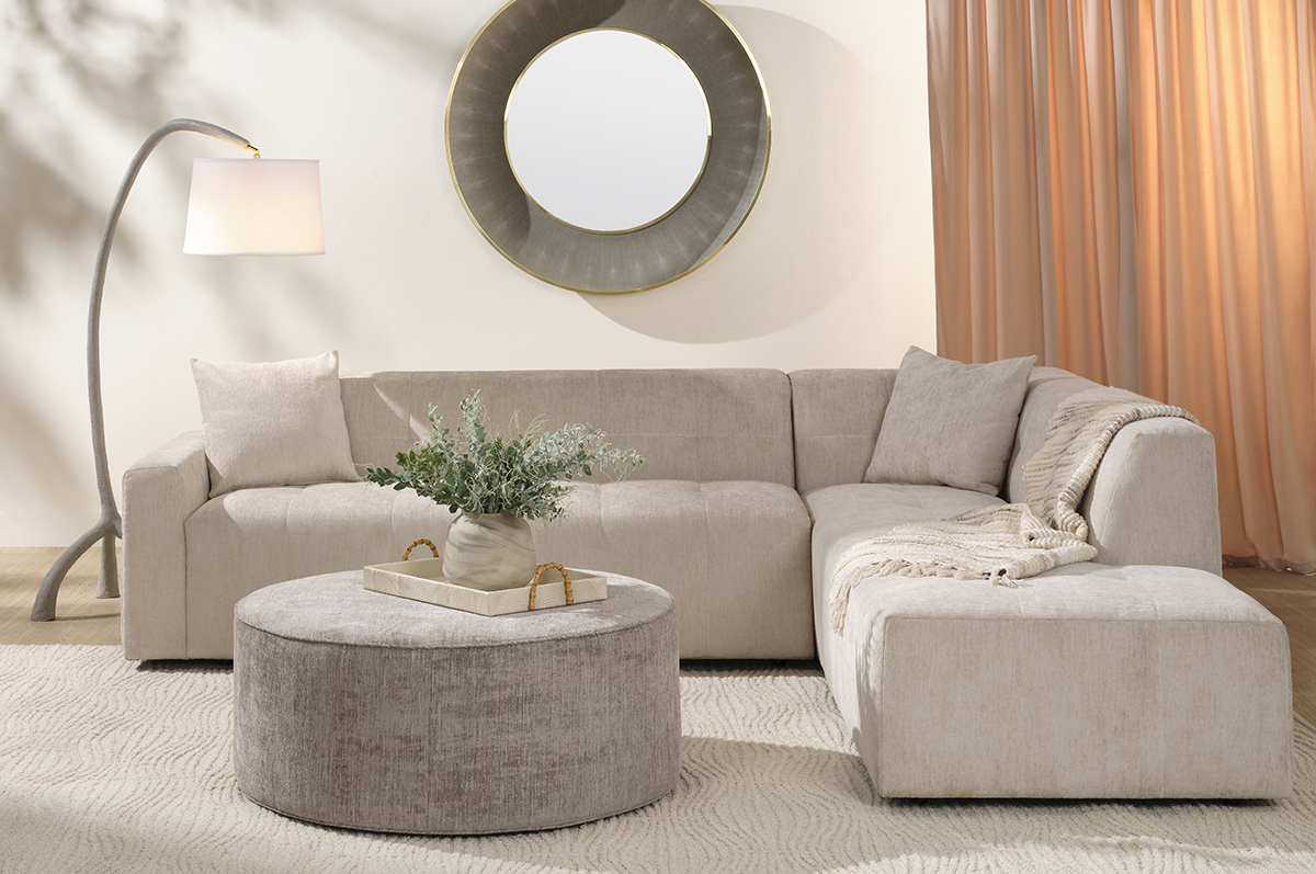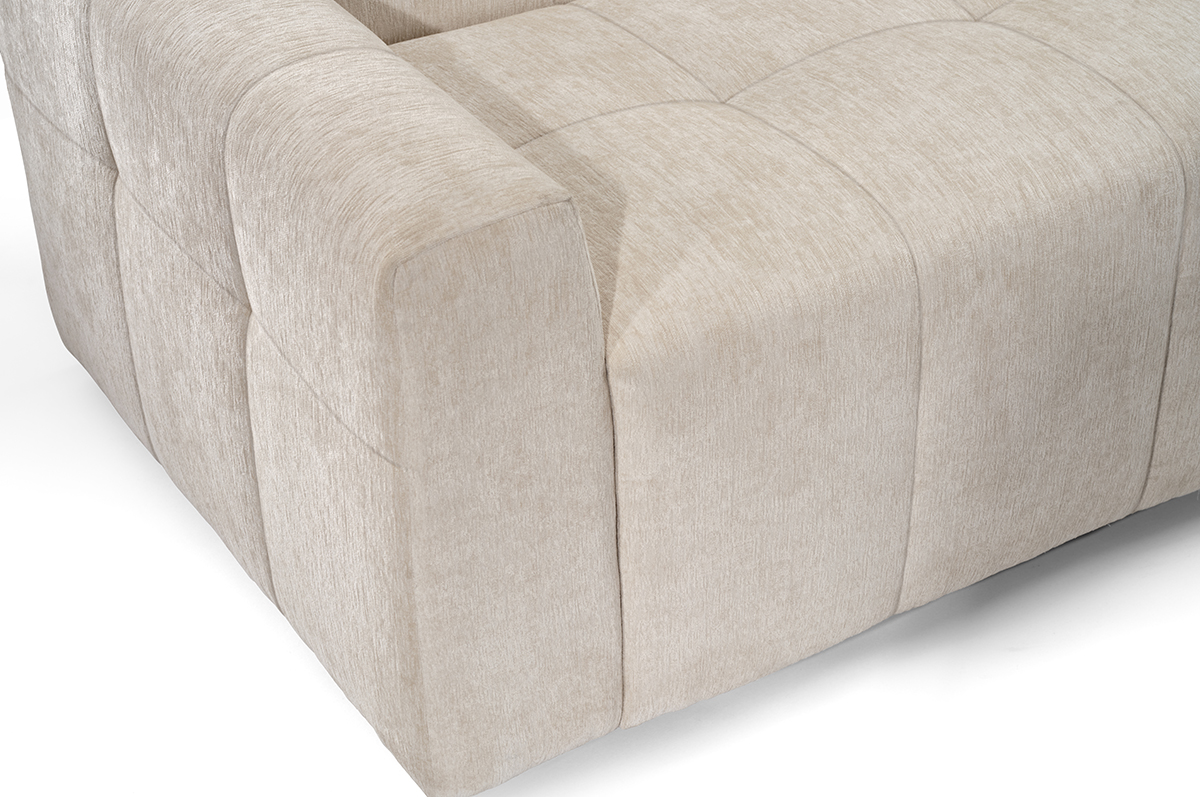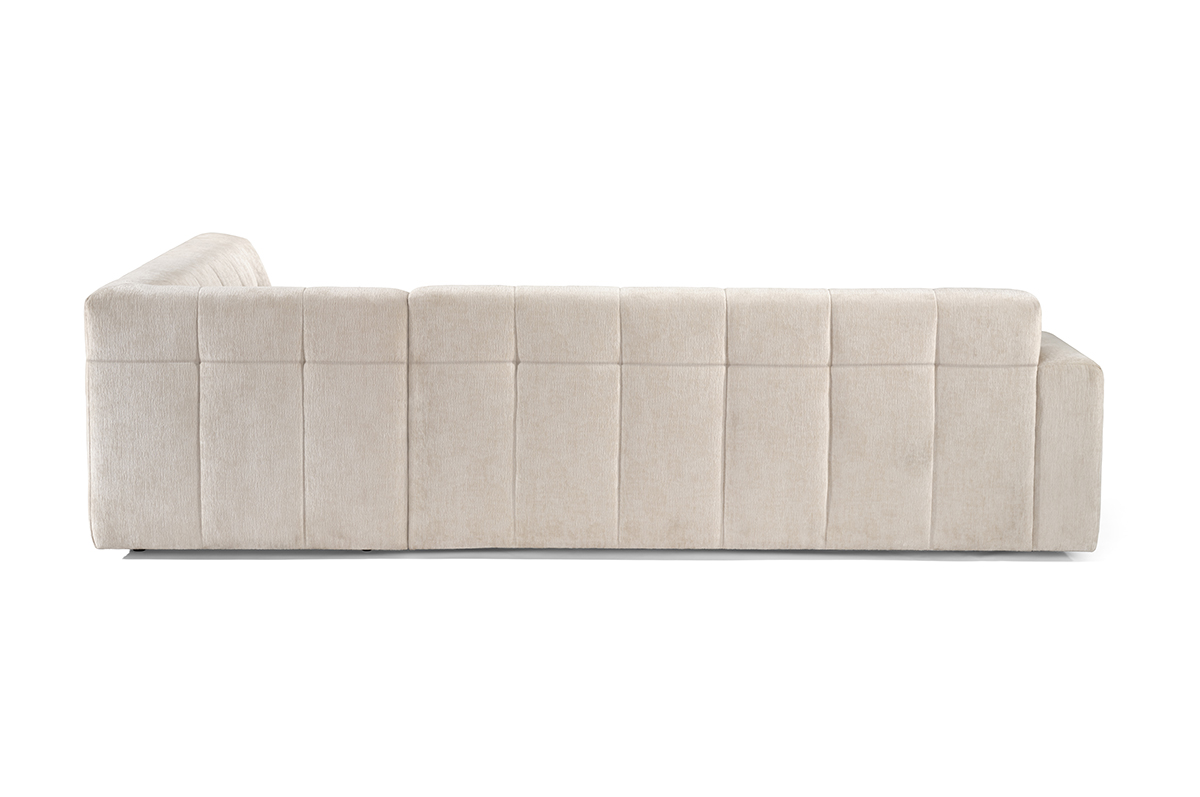 The Frederick Sectional offers a modern design with striking linear tufted detailing on both the outside and inside back. Its hidden legs create a sophisticated floating effect, adding a touch of elegance to this sectional family.