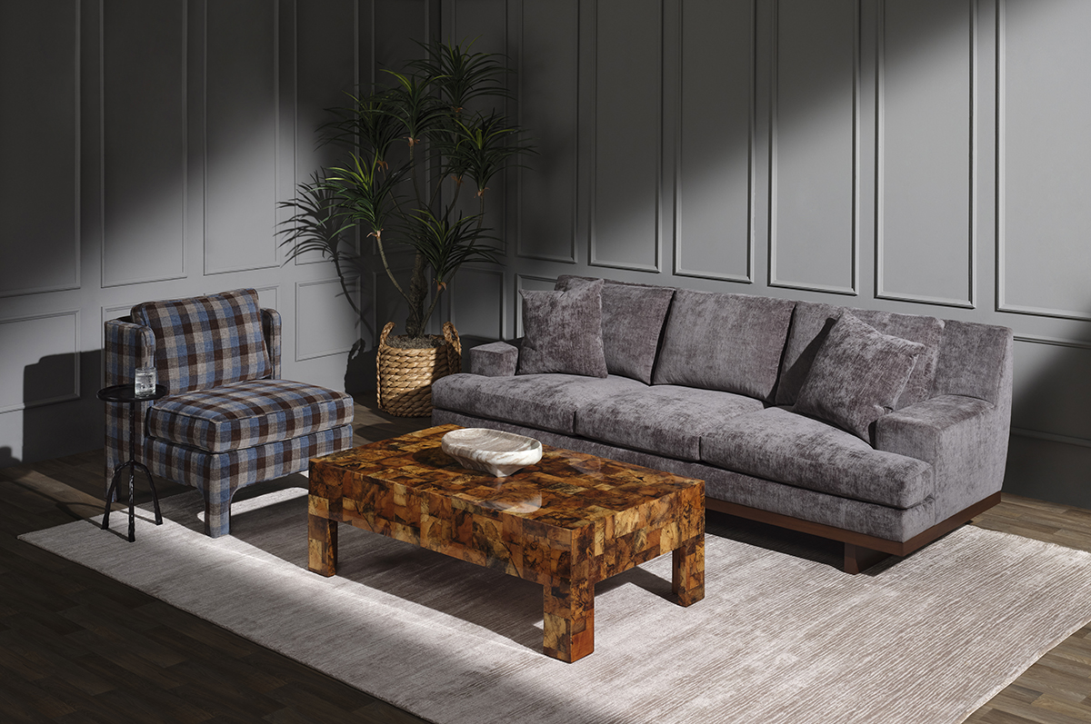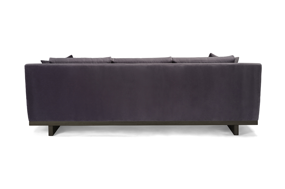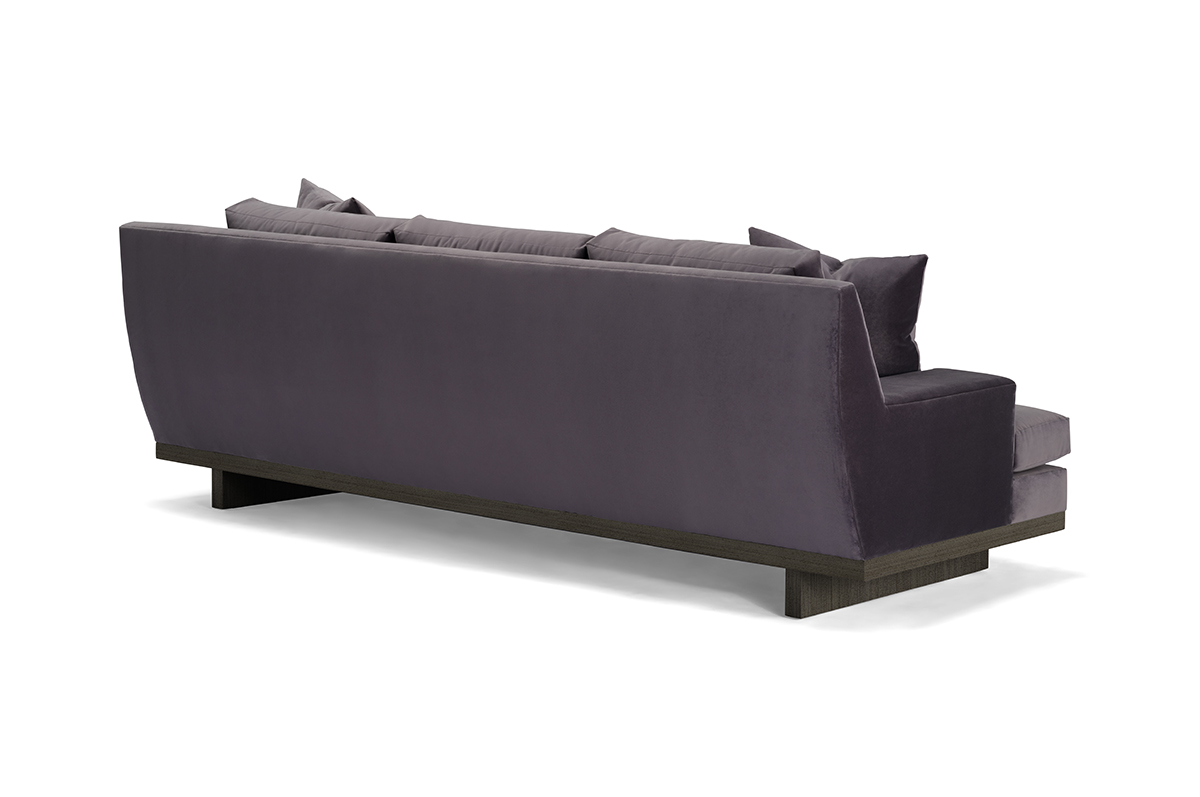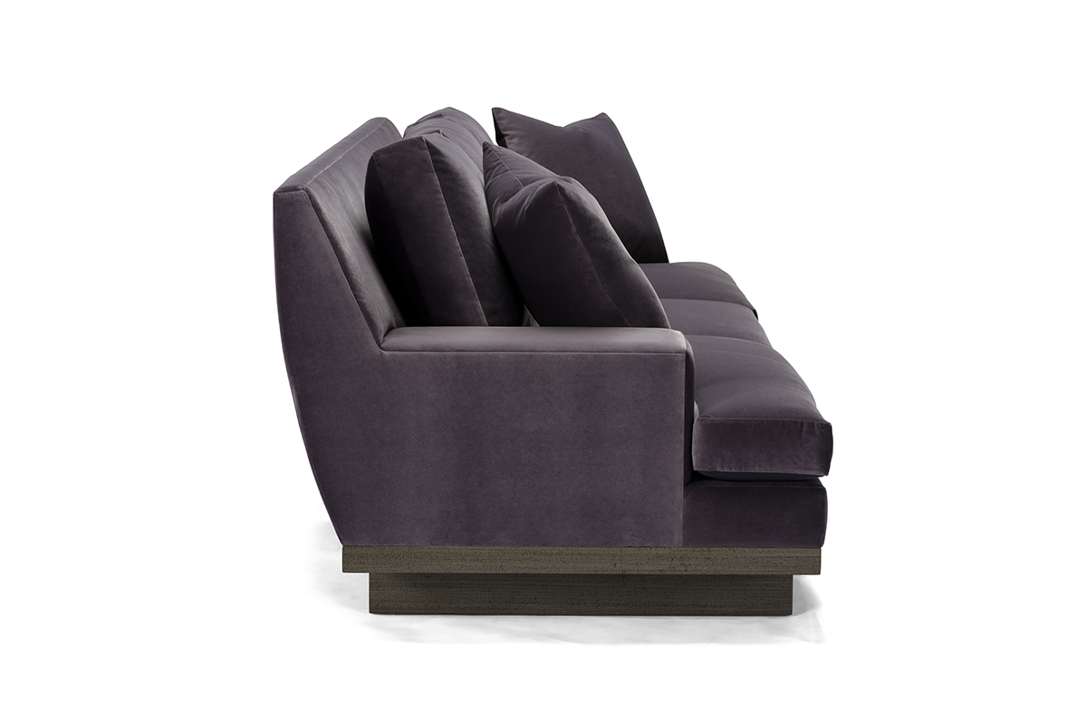 The Andro European modern sofa features wide, low, flat track arms, with a high back with a vertical curve on the outside, and a modern wood base with plank legs for a sleek, contemporary look.